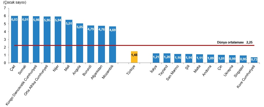 Toplam doğurganlık hızının en yüksek olduğu ülke 6,03 çocuk ile Çad oldu