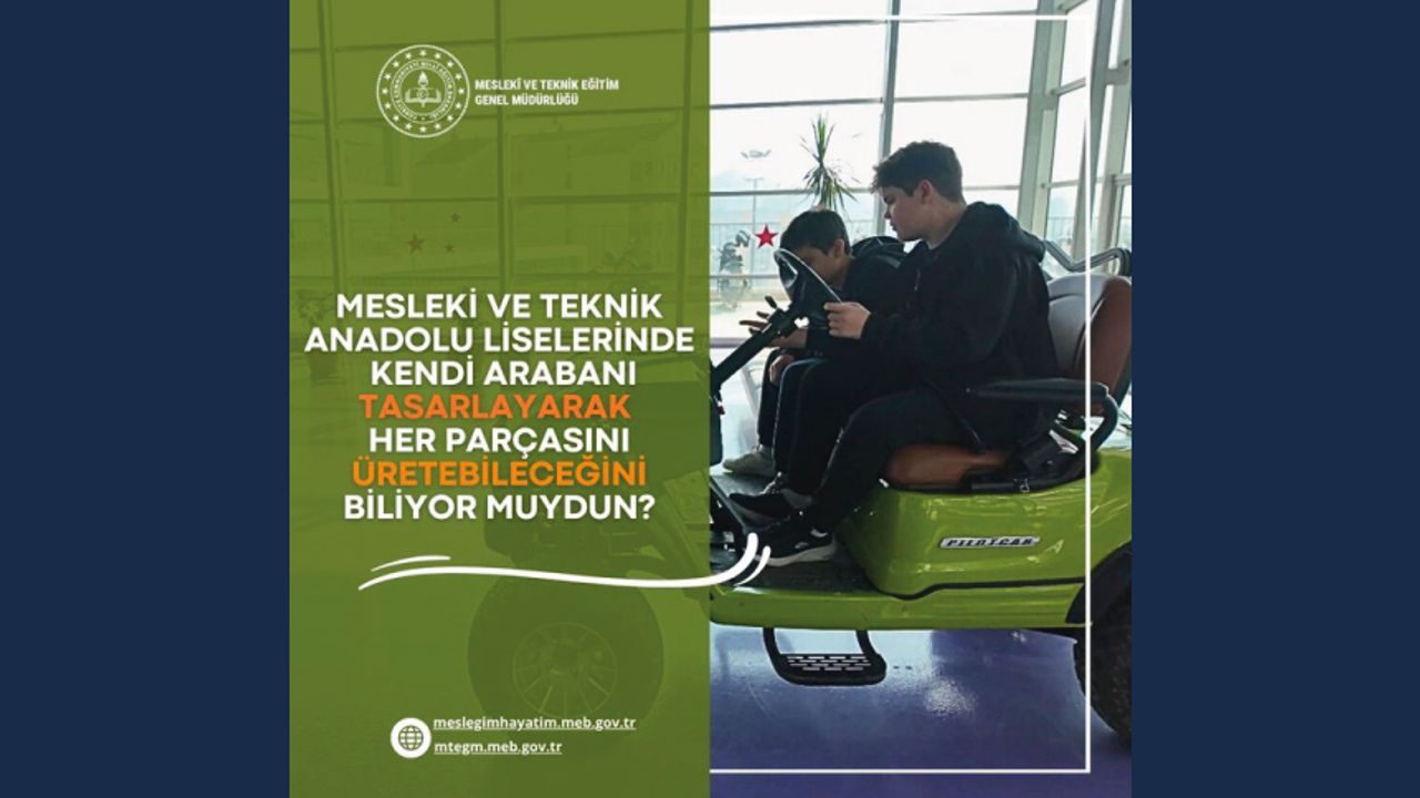Sevgili Gençler, Yerli ve milli üretimin kalbi artık Meslek Liselerinde atıyor! Türkiye'nin otomotiv geleceğini yazacak kalem senin elinde. Hayalindeki aracı gerçeğe dönüştürmeye hazır mısın? Detaylı bilgi için : http://meslegimhayatim.meb.gov.tr http://mtegm.meb.gov.tr