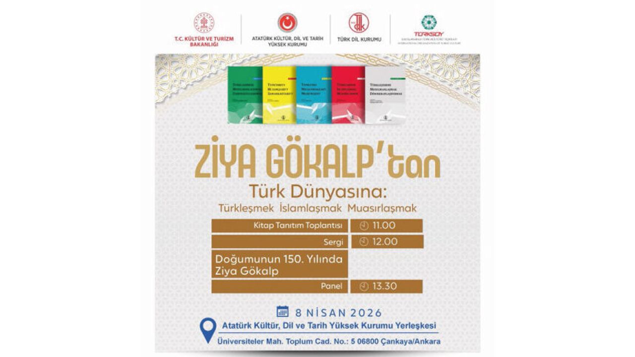 Bu amaç doğrultusunda, hazırlanan eserlerin tanıtımıyla Türk dünyasının kültürel bağlarını güçlendirecek olan “Ziya Gökalp’tan Türk Dünyasına: Türkleşmek İslamlaşmak Muasırlaşmak Eser Tanıtım Toplantısı ve Paneli”, Türk Dil Kurumu ve Uluslararası Türk Kültürü Teşkilatı iş birliğinde 8 Nisan 2026 tarihinde Atatürk Kültür, Dil ve Tarih Yüksek Kurumu Yerleşkesi’nde gerçekleştirilecek. Etkinlik kapsamında ayrıca, Uluslararası Türk Kültürü Teşkilatı ve Türk Tarih ve Kültür Vakfı ortaklığında hazırlanan “Doğumunun 150. Yılında Ziya Gökalp Sergisi” de ilgililerin dikkatine sunulacak.
