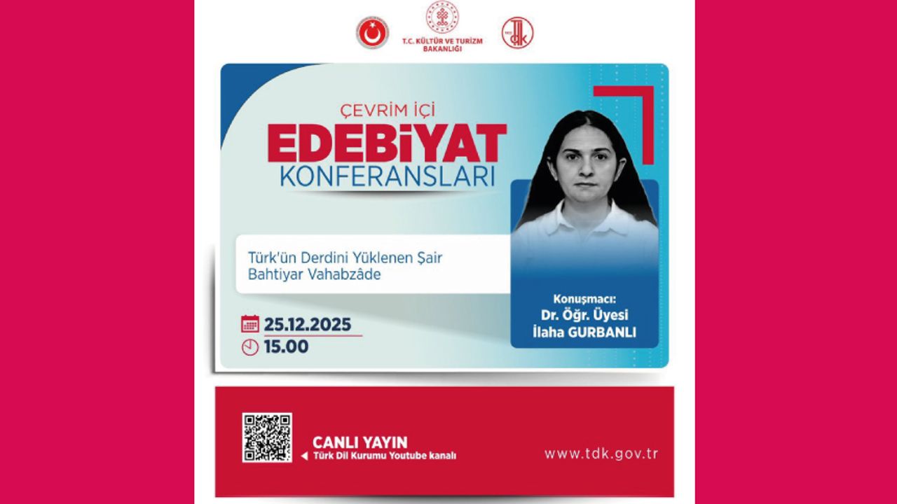 “Çevrim İçi Edebiyat Konferansları” Türk’ün Derdini Yüklenen Şair Bahtiyar Vahabzâde Dr. Öğr. Üyesi İlaha GURBANLI 25.12.2025 15.00 Youtube kanalımızdan canlı olarak takip edebilirsiniz. #EdebiyatKonferansları