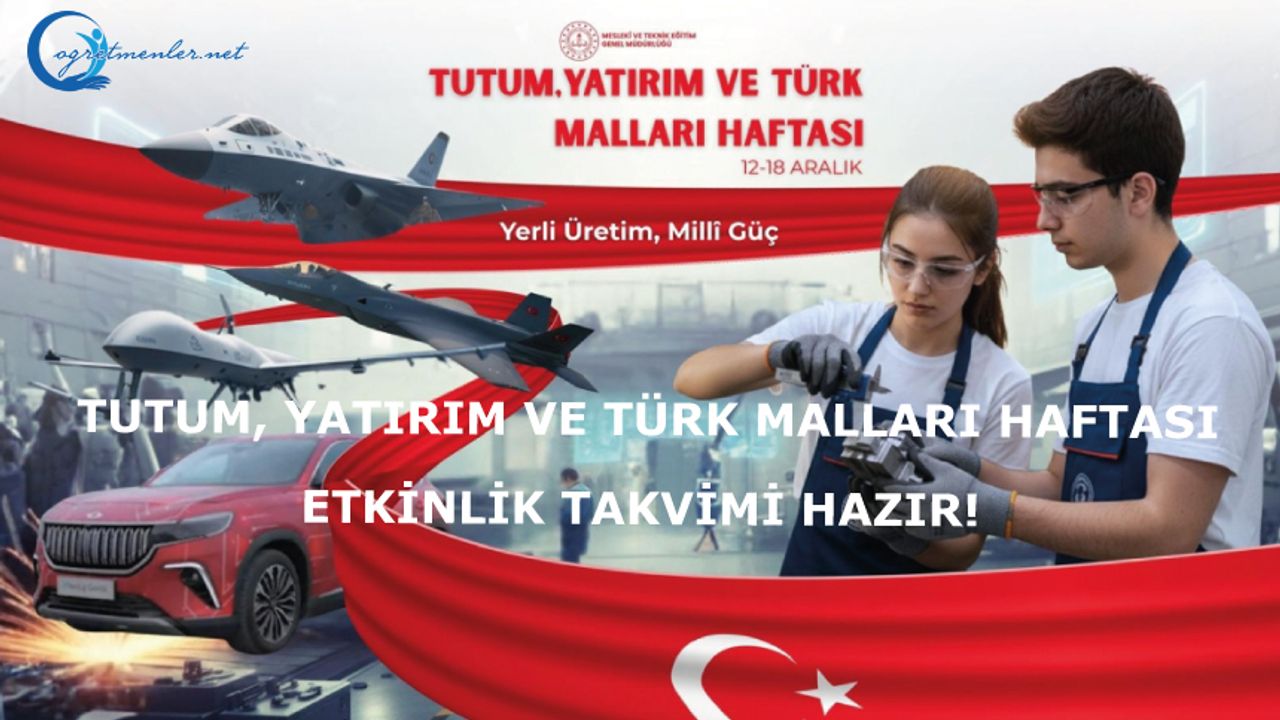 Tutum, Yatırım ve Türk Malları Haftası Etkinlik Takvimi Hazır! Çocuklarımızda tasarruf bilincinin erken yaşlarda gelişmesini desteklemek, yerli üretime yönelik farkındalık oluşturmak ve öğretmenlerimizin sınıf içi uygulamalarında tasarruf kültürünü bütüncül bir bakış açısıyla ele almalarını sağlamak amacıyla “Tutum, Yatırım ve Türk Malları Haftası Etkinlik Takvimi” hazırladık. 12–18 Aralık tarihleri arasında gerçekleştirilecek çalışmalara katkı sunacak olan değerli ailelerimize ve kıymetli öğretmenlerimize teşekkür ediyor, öğrencilerimize çalışmalarında başarılar diliyorum.