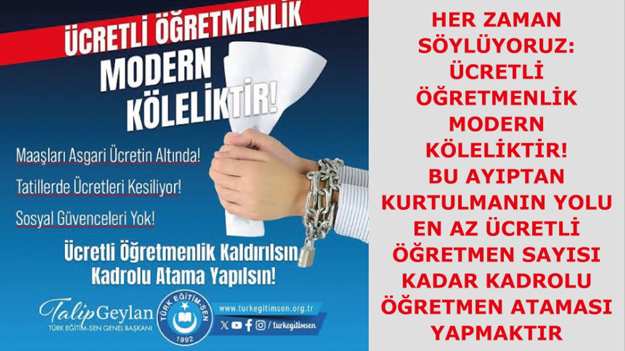 Yarın 1 Mayıs Emek ve Dayanışma Günü. Ama emek bayramında 86.000 ücretli öğretmenin ücreti kesilecek! Zaten asgari ücretin altında maaşla görev yapan bu meslektaşlarımıza reva mı bu? Her zaman söylüyoruz: ÜCRETLİ ÖĞRETMENLİK MODERN KÖLELİKTİR! Bu ayıptan kurtulmanın yolu, en az ücretli öğretmen sayısı kadar kadrolu öğretmen ataması yapmaktır…