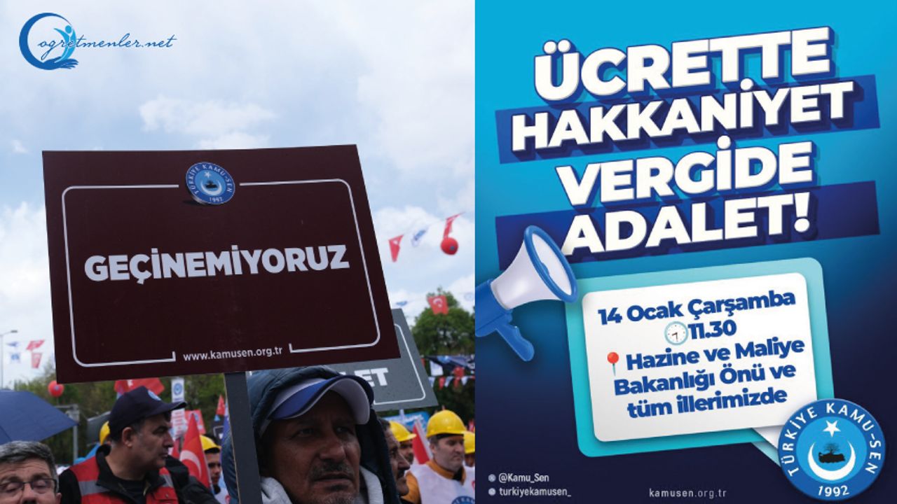 “ÜCRETTE HAKKANİYET, VERGİDE ADALET” talebimizi bir kez daha yinelemek ve kamu görevlilerimizin beklentilerini dile getirmek üzere Türkiye Kamu-Sen olarak; 14 Ocak Çarşamba 11:30’da Hazine ve Maliye Bakanlığı önünde, eş zamanlı olarak tüm illerimizde basın açıklaması yapıyoruz!