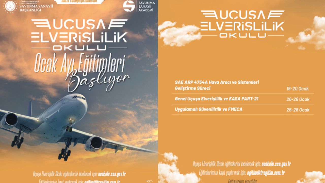 Uçuşa Elverişlilik Okulu Ocak Ayı Eğitimleri Başlıyor! Havacılık ve savunma sanayii profesyonelleri için özel olarak tasarlanan eğitim programlarıyla sektöre yön vermeye devam ediyoruz! Uçuşa elverişlilik süreçlerine dair kapsamlı bilgiler sunan bu eğitimler, teknik yetkinliklerinizi geliştirmenize ve sektörde fark yaratmanıza olanak tanıyor.