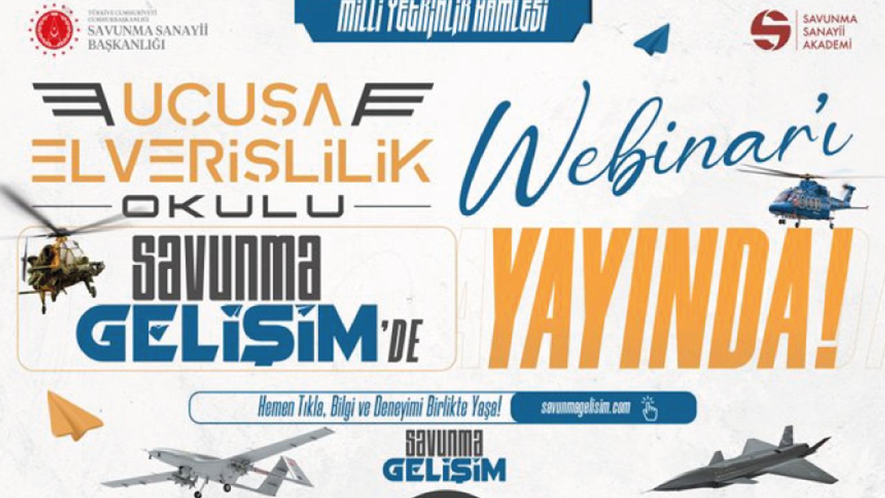“Uçuşa Elverişlilik Okulu” Webinar’ı Savunma Gelişim’de Yayında T.C. Cumhurbaşkanlığı Savunma Sanayii Başkanlığı Savunma Sanayii Akademi tarafından hayata geçirilen "Uçuşa Elverişlilik Okulu" hakkında gerçekleştirilen bu Webinar’ı kaçırma! http://savunmagelisim.com #MilliYetkinlikHamlesi