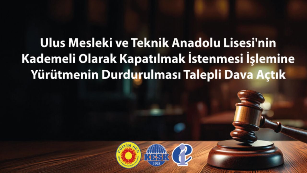 905 yılında Ankara Valiliği’nde bulunan Vali Cevat Bey zamanında “Sanayi Mektebi” olarak açılmış, Ulus’un merkezinde Osmanlı’dan Cumhuriyet’e kadar isim değiştirerek aynı işlevi sürdürebilmiş tek eğitim kurumu olup, hakkında “korunması gereken yapılar” kararı bulunan, şehrin hafıza yapılarından olan Altındağ İlçesi, Ulus Mesleki ve Teknik Anadolu Lisesi’nin kademeli olarak kapatılacağından bahisle 2025-2026 Eğitim Öğretim yılından itibaren okulun kontenjan planlamasına dahil edilmemesine ilişkin Milli Eğitim Bakanlığı’nın 11.03.2025 tarihe ve E-90757378-110.01-128596181 sayılı işlemine karşı yürütme durdurma talepli dava açtık.
