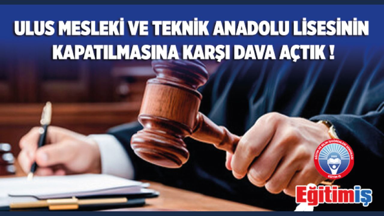 Tarihimizden aldığımız bilinç ve öğrencilerimize olan sorumlulukla Mesleki ve Teknik Eğitim Genel Müdürlüğünün, Ulus Mesleki ve Teknik Anadolu Lisesi’ni kademeli olarak kapatılması kararına karşı yürütmeyi durdurma ve iptal talebiyle dava açtık.