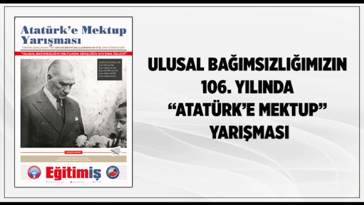 ULUSAL BAĞIMSIZLIĞIMIZIN 106. YILINDA “ATATÜRK’E MEKTUP” YARIŞMASI