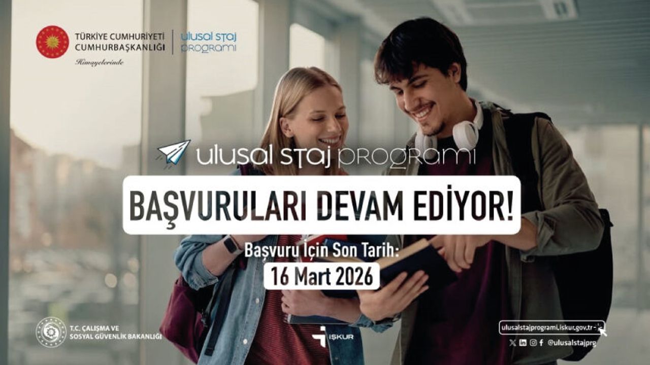 Gençlerin iş hayatına adım atmalarını kolaylaştırmak ve mesleki deneyim kazanmalarını desteklemek amacıyla Cumhurbaşkanlığı himayelerinde Türkiye İş Kurumu (İŞKUR) koordinasyonunda yürütülen Ulusal Staj Programı başvuruları 16 Mart 2026 tarihinde sona erecektir.