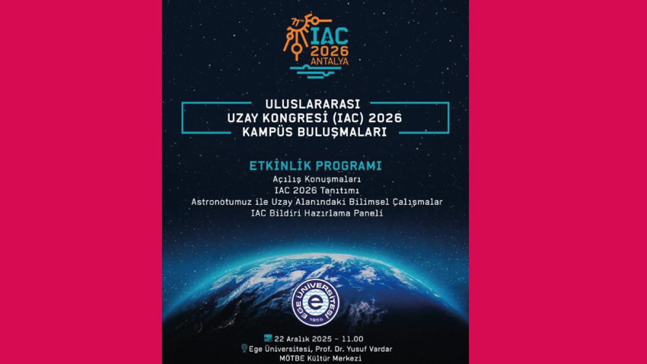 Uluslararası Uzay Kongresi (IAC) 2026 Kampüs Buluşmaları Devam Ediyor! 2026’da dünyanın en büyük uzay etkinliğini Antalya’da düzenlemeye hazırlanırken, Türkiye’nin dört bir yanındaki üniversitelerde bir araya geliyoruz! Hemen başvur: https://forms.gle/tUUQNjopgUJHtoxZA