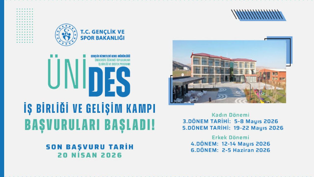Gençlik ve Spor Bakanlığı Gençlik Hizmetleri Genel Müdürlüğü tarafından yürütülen Üniversite Öğrenci Toplulukları İş Birliği ve Destek Programı (ÜNİDES) kapsamında düzenlenen İş Birliği ve Gelişim Kampları başvuruları başladı.Üniversite öğrencileri için önemli bir fırsat sunan ÜNİDES, üniversite öğrenci topluluklarının projelerini hayata geçirmelerine kolaylık sağlayan bir destek programıdır. Gençlik Hizmetleri Genel Müdürlüğü tarafından hazırlanan program kapsamında; üniversitelerin yönerge, usul ve esasları ile diğer mevzuatları çerçevesinde onaylanmış öğrenci kulüpleri desteklenmektedir.