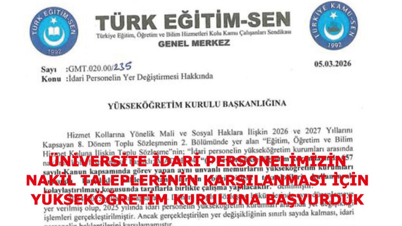 Üniversite idari Personelimizin Nakil Taleplerinin Karşılanması İçin Yükseköğretim Kuruluna Yazılı Başvuruda Bulunduk ...