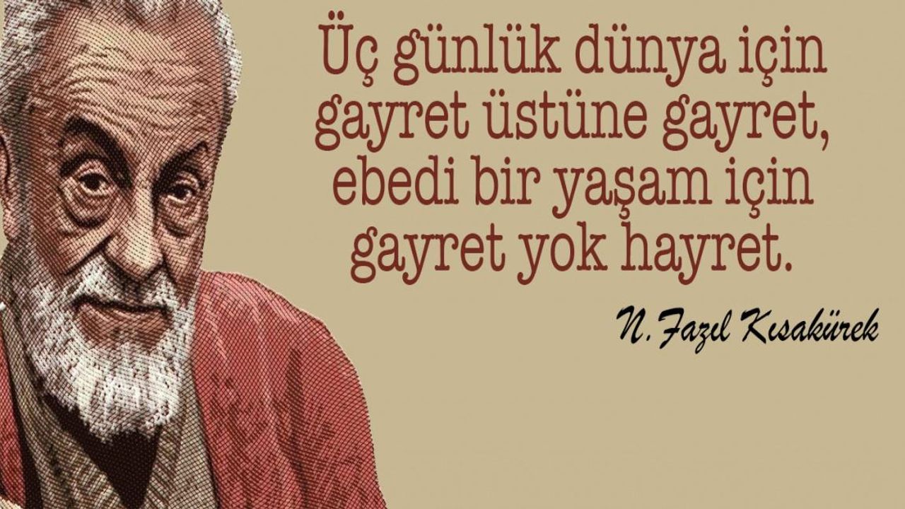 Cumhurbaşkanı Erdoğan, Kısakürek'in "Çile" adlı şiirindeki "Akrep, nokta nokta ruhumu sokmuş/ Mevsimden mevsime girdim böylece/Gördüm ki, ateşte, cımbız da yokmuş/Fikir çilesinden büyük işkence." dizelerini okuyarak, "Üstat Necip Fazıl, büyük bir şair ve mütefekkir olmanın yanı sıra büyük bir mefkûrenin mihmandarlığını, Büyük Doğu davasının sancaktarlığını yapan bir aksiyon adamıydı. Kurduğu cemiyetle Anadolu'yu adım adım gezdi. Gençlerle bir araya geldi. 'Bir iman merkezi etrafında toplananlar.' olarak tarif ettiği milletimizi ruh kökleriyle yeniden buluşturmak için ömrü boyunca çalıştı, didindi, cehdetti. Tabii bu kutlu yürüyüşte devrin kibir abidelerinin de radarına girdi." ifadelerini kullandı.
