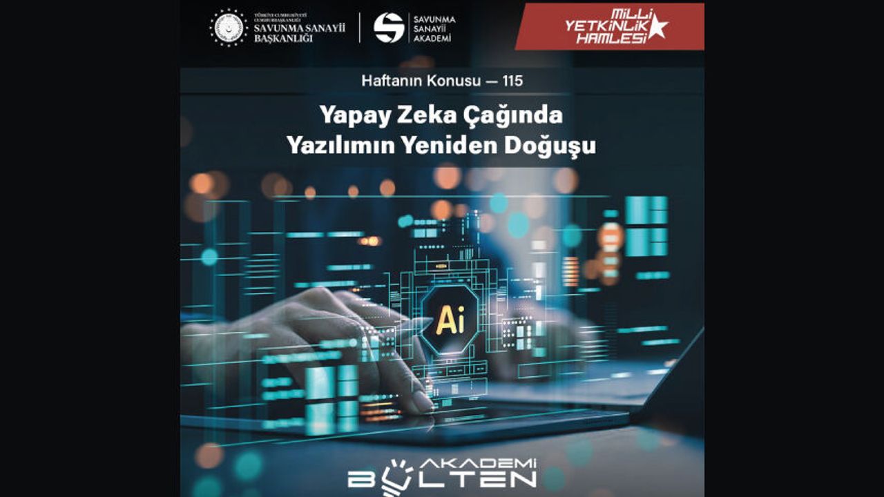 Savunma Sanayii Akademi bu hafta sizler için “Yapay Zeka Çağında Yazılımın Yeniden Doğuşu” konusunu ele aldı. Yazılım artık sadece kod değil; öğrenen, uyum sağlayan ve kendi kendini geliştiren bir yapıya dönüşüyor…