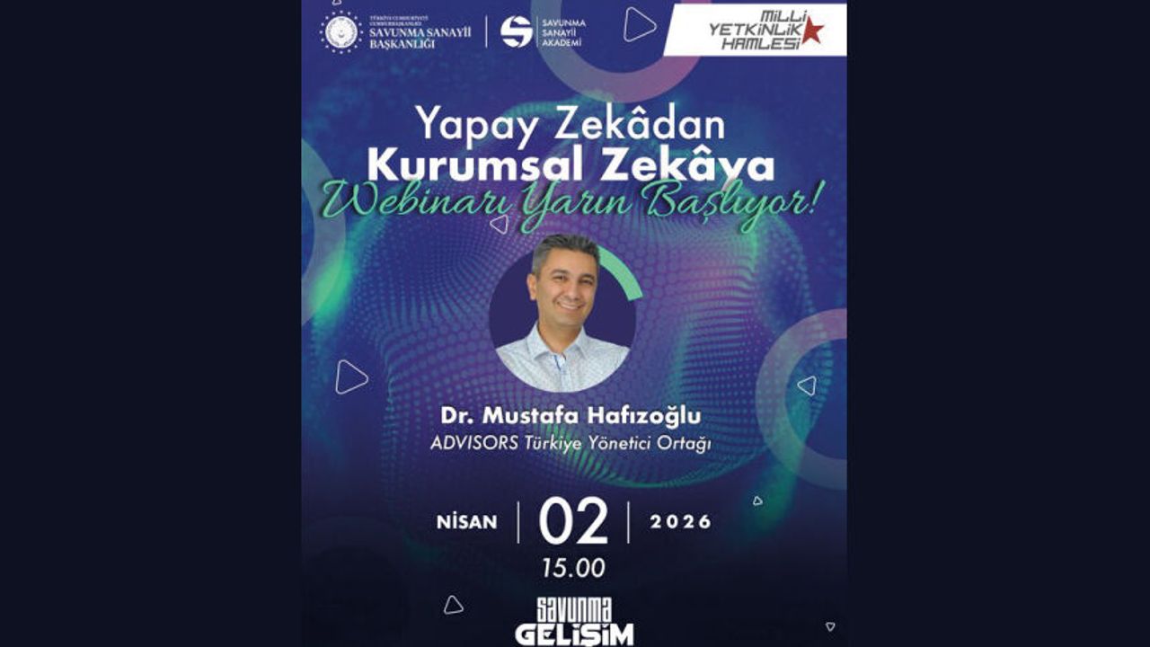 Dr. Mustafa Hafızoğlu ile “Yapay Zekâdan Kurumsal Zekâya” webinarı yarın başlıyor!