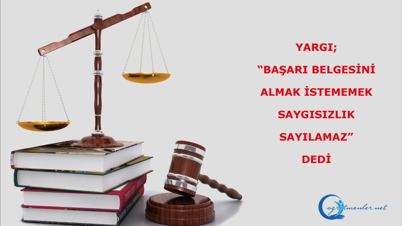 “Başarı belgesini almak istememek saygısızlık sayılamaz.”
