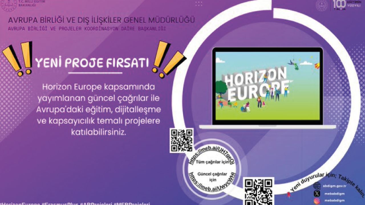 Yeni Proje Fırsatı! Horizon Europe kapsamında yayımlanan güncel çağrılar ile Avrupa'daki eğitim, dijitalleşme ve kapsayıcılık temalı projelere katılabilirsiniz.