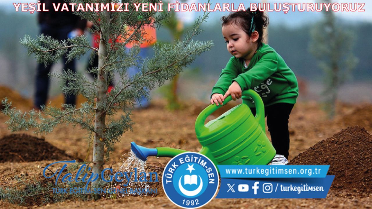 Ayrıca Türk Eğitim Sen olarak Türkiye genelinde “Yeşil Vatanımızı Yeni Fidanlarla Buluşturuyoruz” konulu Ağaçlandırma Seferberliği başlatacağımızı da bu vesileyle duyuruyoruz. Buna göre; şubelerimiz aracılığıyla dikilecek fidanlarımız hem yurdumuzun ağaçlandırmasına katkı sağlayacak hem de çevre farkındalığını artıracaktır.