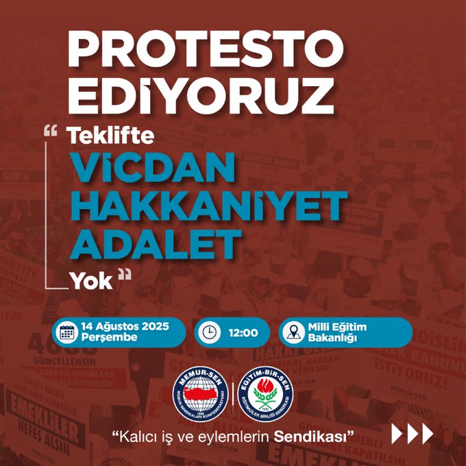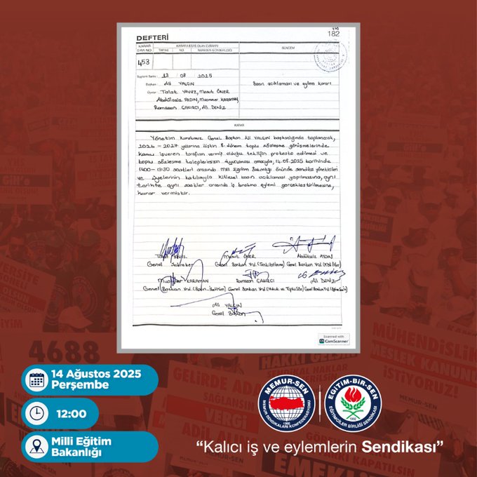 📅 Tarih: 14 Ağustos Perşembe 🕛 Saat: 12.00 📍 Yer: Milli Eğitim Bakanlığı