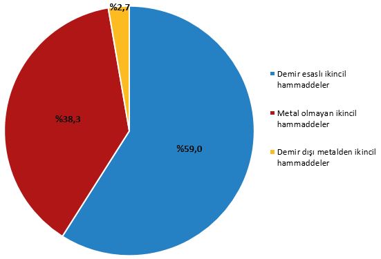 Tasnif edilmiş materyallerin geri kazanımı faaliyetlerinden 2024 yılında toplam 2 milyon 456 bin 307 ton ikincil hammadde elde edildi. Bu ikincil hammaddelerin %61,7'sini metal esaslı (%59 demir ve %2,7 demir dışı metal), %38,3'ünü ise metal olmayan ikincil hammaddeler oluşturdu.