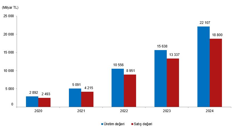 Üretimden yapılan satışlar 18 trilyon 800 milyar 473 milyon TL oldu