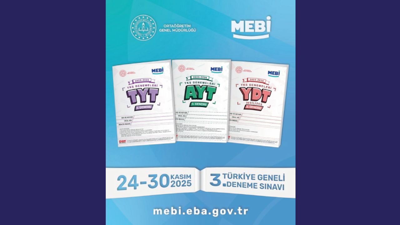 MEBİ @meb_mebi YKS 3. Türkiye Geneli Denemesi başlıyor! TYT – AYT – YDT denemeleri 24–30 Kasım’da MEBİ’de seni bekliyor.