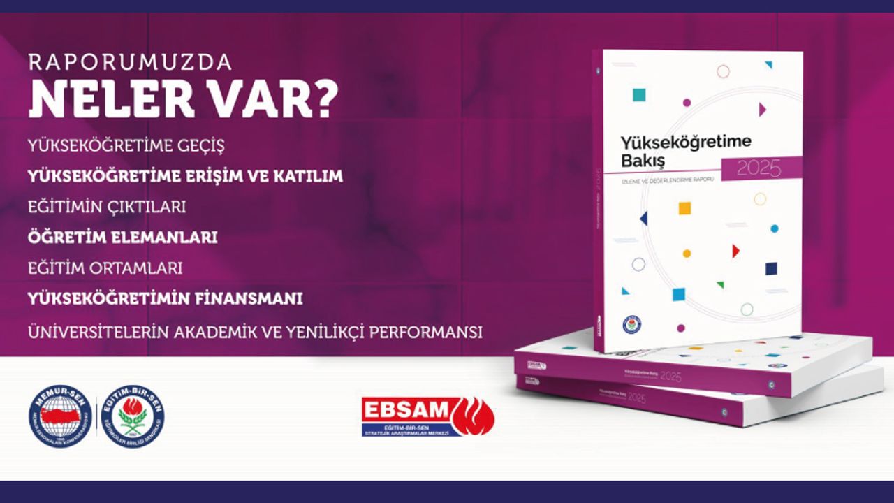 Yükseköğretime Bakış 2025: İzleme ve Değerlendirme Raporu Yayında Eğitim-Bir-Sen olarak, yükseköğretimde adalet, kalite ve sürdürülebilirlik için çözüm önerilerimizi kamuoyuyla paylaşıyoruz. Dokuzuncusunu hazırladığımız raporda yükseköğretime erişim, katılım, istihdam, finansman ve uluslararasılaşma başlıkları kapsamlı biçimde ele alınıyor. Raporda, yükseköğretim sistemimizin mevcut durumu analiz edilirken ayrıca sürdürülebilir, adil ve nitelikli bir eğitim politikası için yol haritası da ortaya konuluyor. Gençlerin talebi olan eğitim–istihdam bağının güçlendirilmesi, beşeri sermayemizin geliştirilmesi ve küresel rekabette daha etkin bir konuma ulaşılması için ivedi reform ihtiyacına dikkat çekiliyor. • Veriye dayalı analizler • Geleceğe yönelik politika önerileri • Güçlü yükseköğretim, güçlü Türkiye