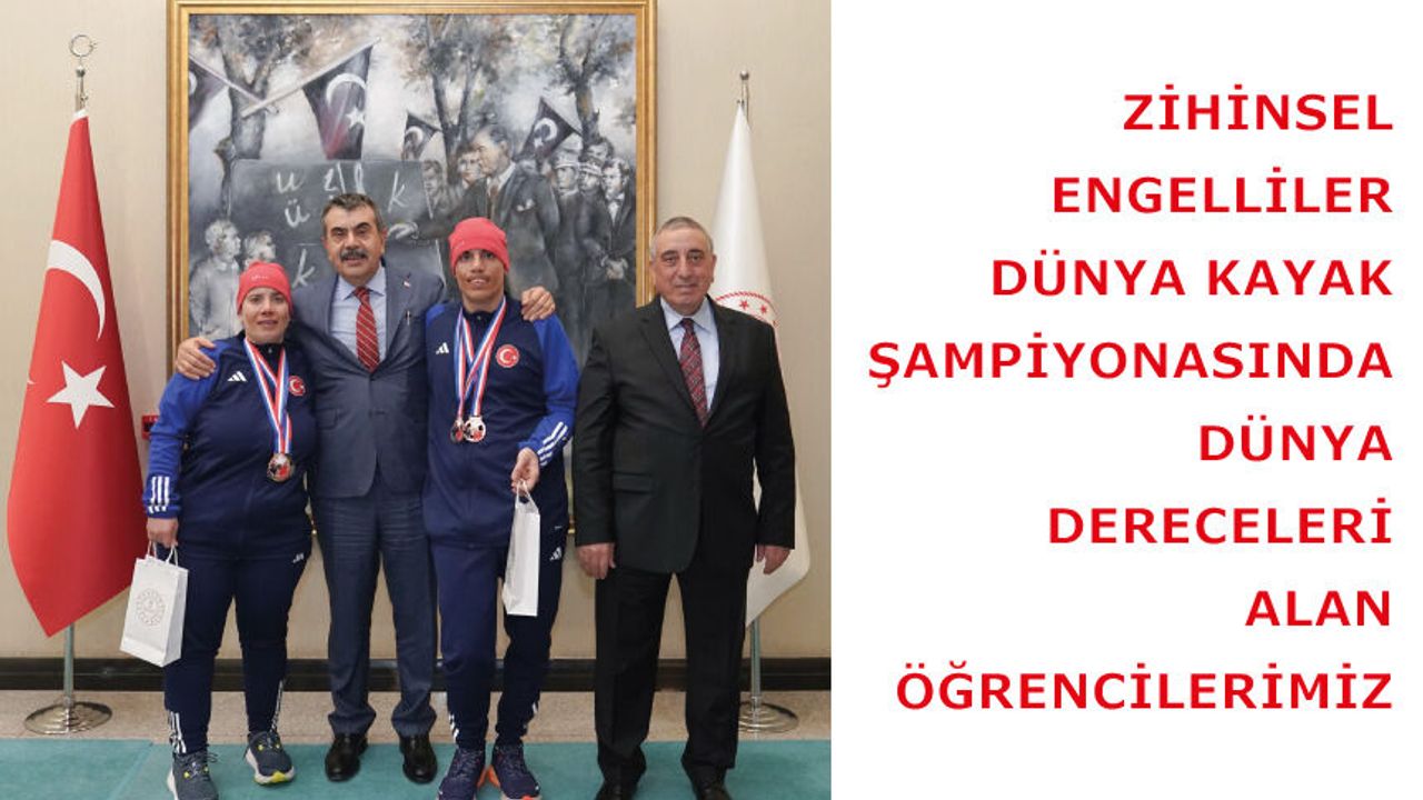 “Engeller Aşılmak İçin Vardır” Fransa’da düzenlenen “Zihinsel Engelliler Dünya Kayak Şampiyonası”ndaki dünya derecelerinin ardından Millî Eğitim Bakanımız@Yusuf__Tekintarafından kabul edilen evlatlarımız; Aliye Zeynep Bingül; Süper Grand Slalom ,Grand Slalom ve Slalom yarışlarında ayrı ayrı dünya ikincisi, Muhsin Murat Bingül ise Süper Grand Slalom, Grand Slalom ve Slalom yarışlarında ayrı ayrı dünya üçüncüsü oldu. Ülkemize toplamda üç gümüş ve üç bronz madalya kazandıran aslan yürekli sporcularımızla gurur duyuyoruz. Çocuklarımızın azim dolu yaşam yolculuklarına eşlik eden öğretmenlerimiz, antrenörlerimiz ve ailemize teşekkür ederiz.