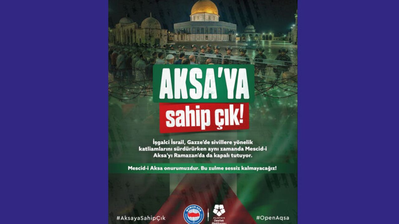 Azgınlıkta sınır tanımayan İsrail, yalnızca bir coğrafyayı değil; inancı, vicdanı ve insanlığın ortak değerlerini hedef almaya devam ediyor. Mescid-i Aksa’ya vurulan her kilit, ümmetin kalbine vurulmuş bir prangadır. İbadeti engelleyen bu zorbalık; hukuksuzluğun ve pervasızlığın açık ilanıdır. Günlerdir süren bu kuşatma, sadece kapıları değil; adaleti, özgürlüğü ve insan onurunu da esaret altına almaya çalışıyor. Katil İsrail’in bu zulmü derhal sona ermelidir! Biz susmayacağız, kabullenmeyeceğiz, unutturmayacağız. Zincirler kırılacak, Mescid-i Aksa özgürlüğüne kavuşacak! #AksayaSahipÇık #OpenAqsa